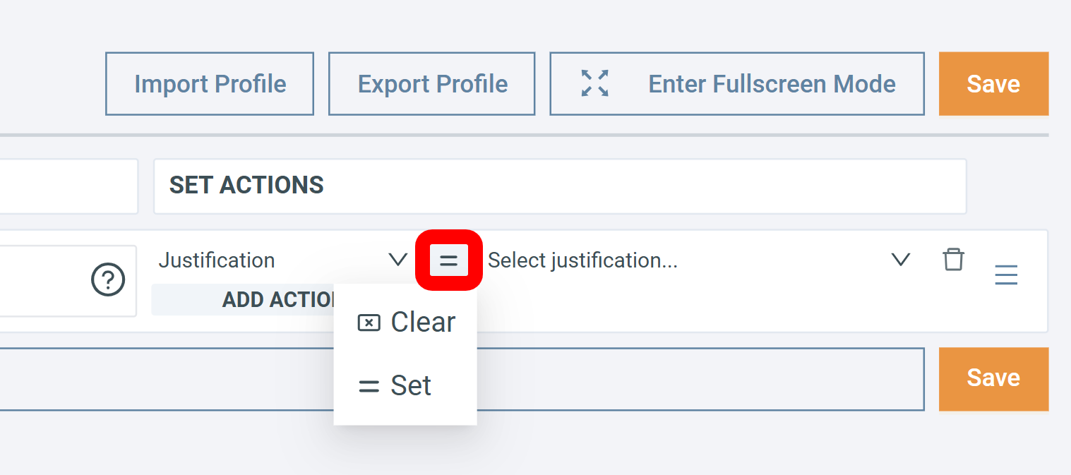 By default, each action uses the Set mode, but some actions support additional modes. Click to choose a different behavior: